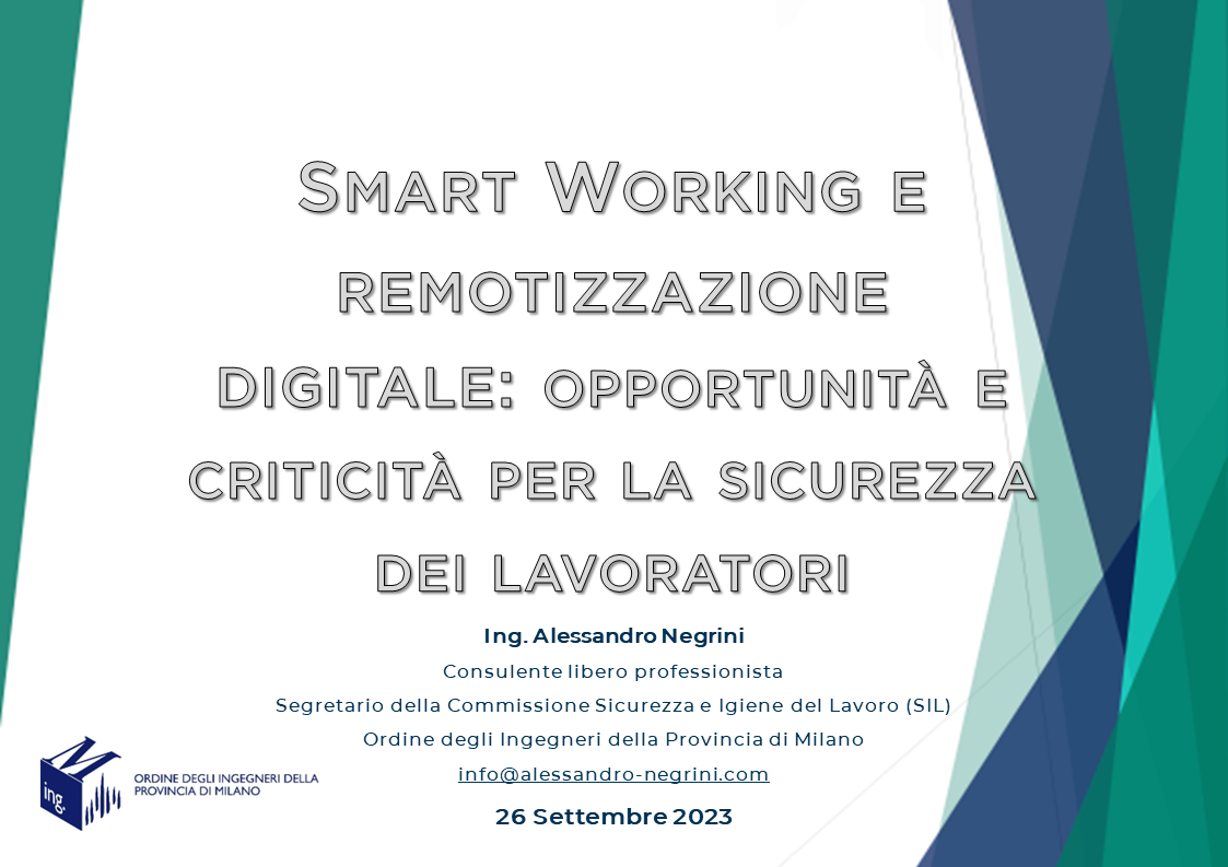 In the evolution towards the so-called "smart society", smart working and digital remotization are still trapped in a gray area that leaves many doubts, especially in terms of occupational safety. On September 26th I had the opportunity to deepen this theme during a FAD seminar held in collaboration with FOIM.