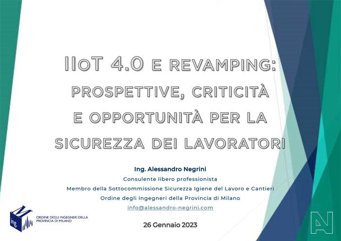 Talking about IIoT 4.0 also means looking at the enhancement of existing technical resources (revamping) as well as the construction of a new type of welfare based on occupational safety. On January 26th I had the opportunity to present my point of view on this subject during a FAD seminar in collaboration with FOIM.