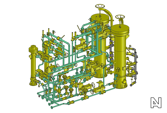 - Pressure vessels design and verification by classical approach and/or FEA;